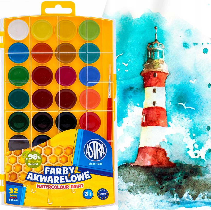 - Farby akwarelowe Astra to wysokiej jakości farby wodorozcieńczalne gwarantujące żywe i intensywne kolory.