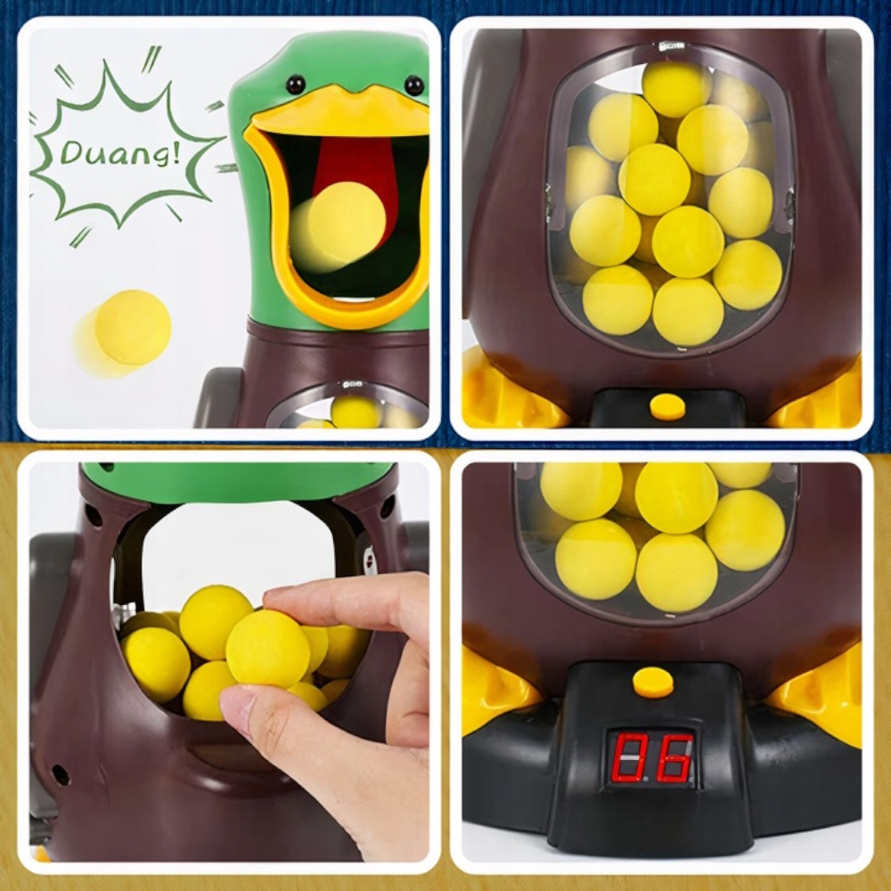 ✅Liczenie Trafień z Interaktywnym Wyświetlaczem -Kaczka posiada wyświetlacz LCD, który wyświetla wynik trafień w czerwonym kolorze. Za każdym razem, gdy piłka trafia w cel, kaczka kwacząc daje znać o uzyskaniu punktu. Dzieci uczą się liczyć w sposób interaktywny i zabawny.