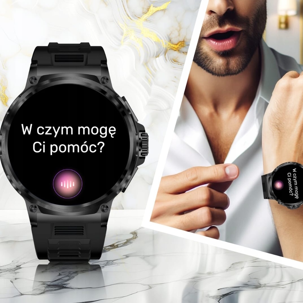 - 🗣️ Asystent Głosowy: Steruj zegarkiem za pomocą komend głosowych, gdy masz zajęte ręce.