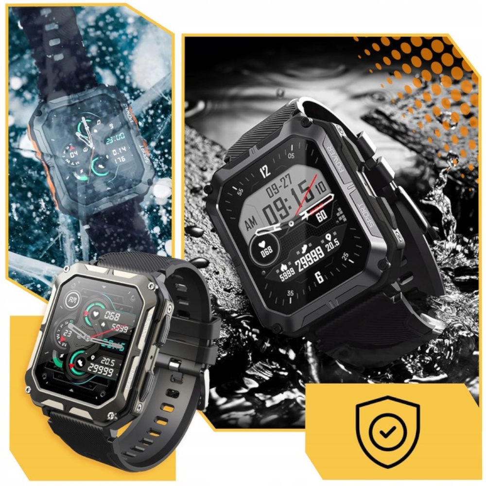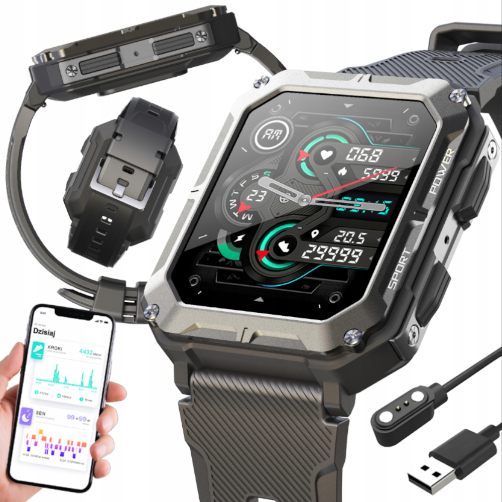 💧 💧 Wodoszczelność IP68 – odporność na wodę i kurz (nie nadaje się do pływania).