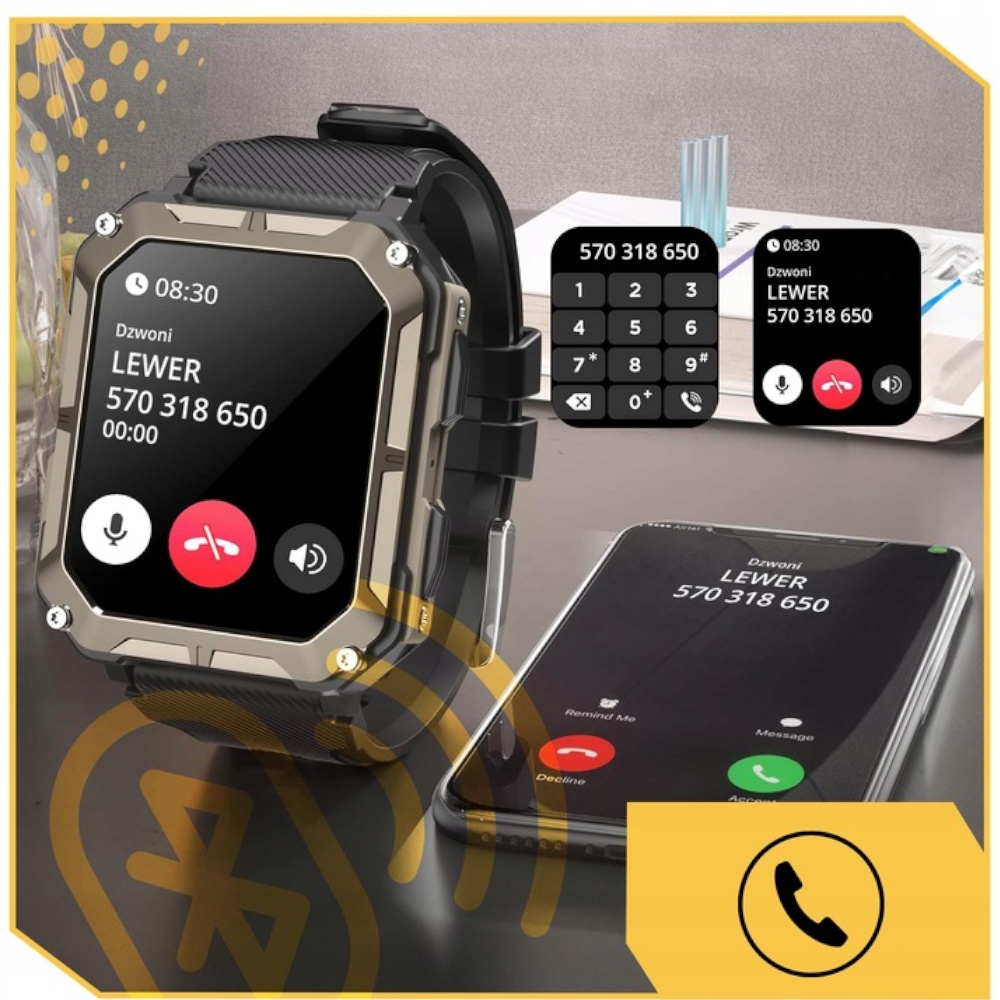 📱 📞 Obsługa połączeń telefonicznych – możesz wykonywać i odbierać rozmowy bezpośrednio z zegarka (wbudowany mikrofon + głośnik).